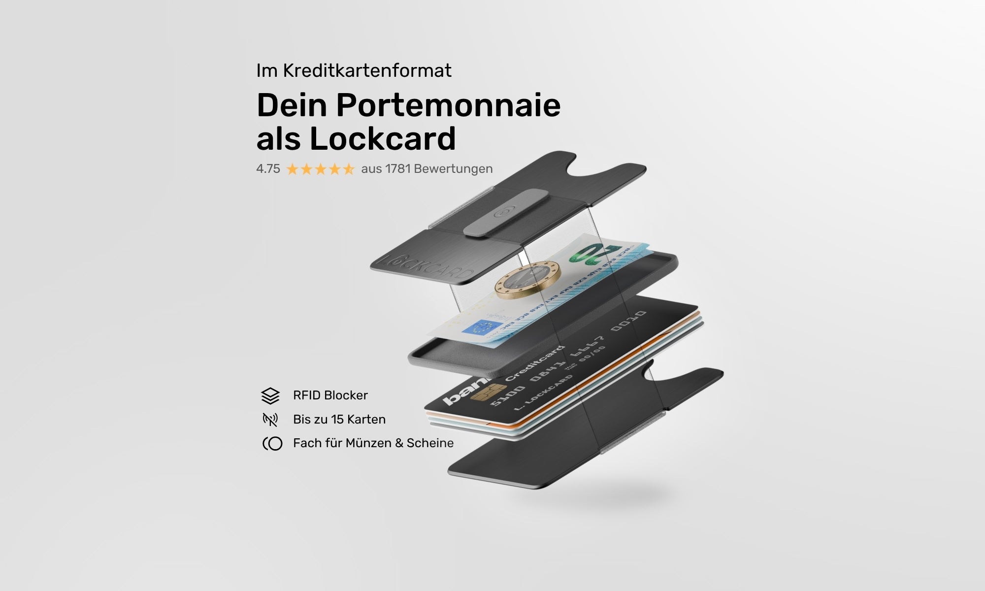 Hinweis: Der Cash-Slider mit einer Münzdicke ist beim Wallet (Set) immer dabei.